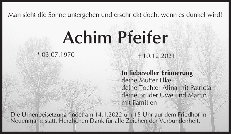 Hier finden Sie alle Traueranzeigen aus der Zeitung, die bisher für Achim Pfeifer erschienen sind. Weitere Traueranzeigen, die in der Zeitung erscheinen, werden hier ebenfalls aufgelistet