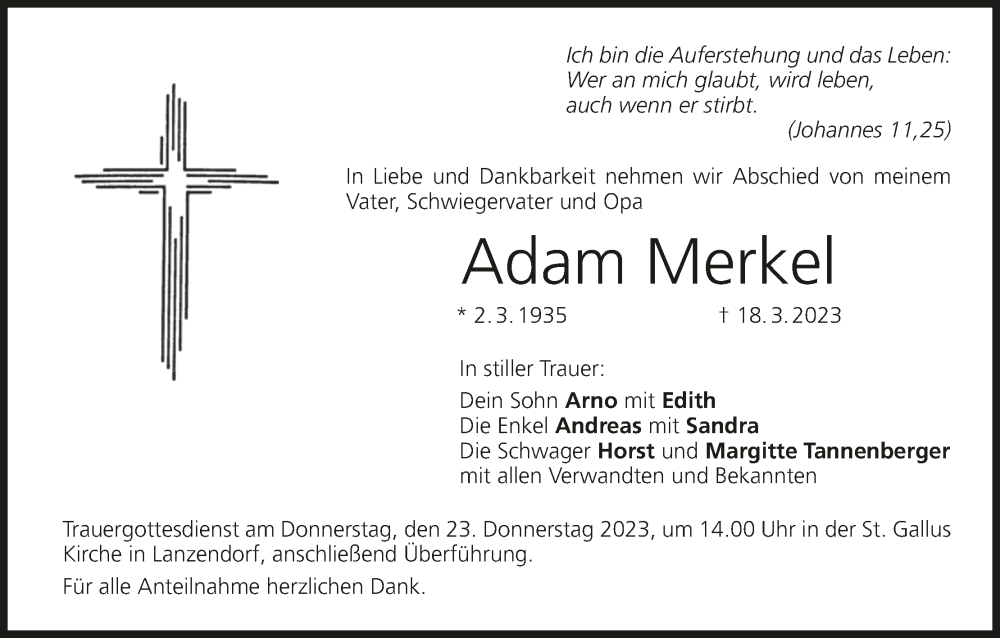 Hier finden Sie alle Traueranzeigen aus der Zeitung, die bisher für Adam Merkel erschienen sind. Weitere Traueranzeigen, die in der Zeitung erscheinen, werden hier ebenfalls aufgelistet