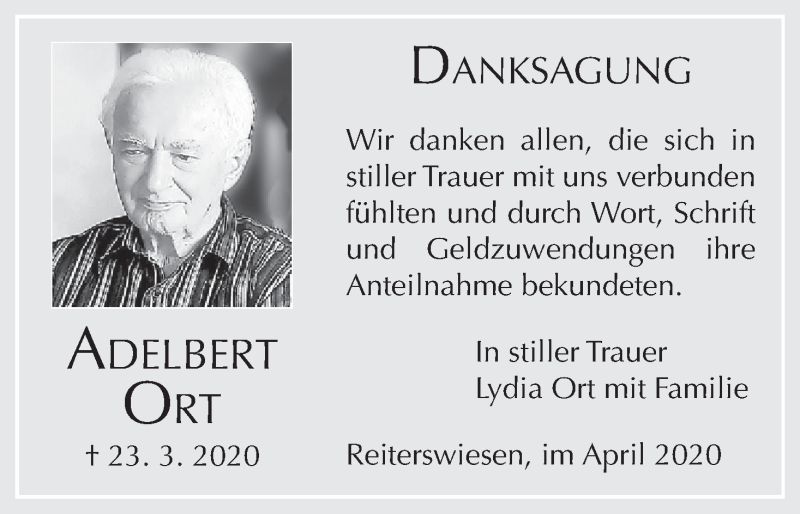 Hier finden Sie alle Traueranzeigen aus der Zeitung, die bisher für Adelbert Ort erschienen sind. Weitere Traueranzeigen, die in der Zeitung erscheinen, werden hier ebenfalls aufgelistet