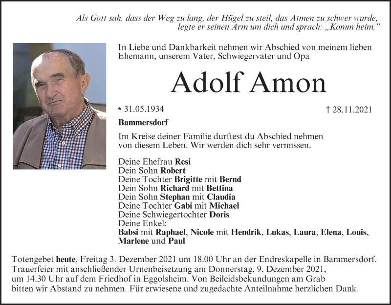 Hier finden Sie alle Traueranzeigen aus der Zeitung, die bisher für Adolf Amon erschienen sind. Weitere Traueranzeigen, die in der Zeitung erscheinen, werden hier ebenfalls aufgelistet