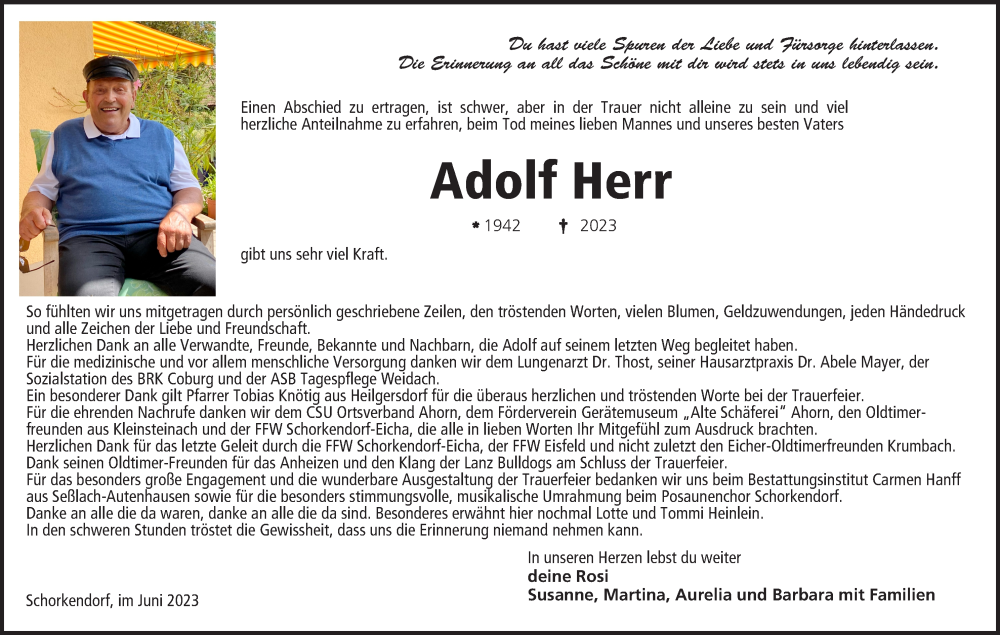 Hier finden Sie alle Traueranzeigen aus der Zeitung, die bisher für Adolf Herr erschienen sind. Weitere Traueranzeigen, die in der Zeitung erscheinen, werden hier ebenfalls aufgelistet