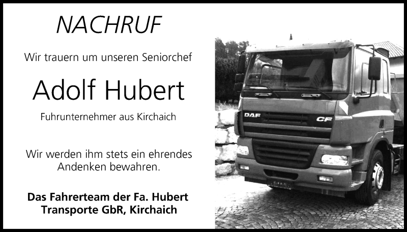 Hier finden Sie alle Traueranzeigen aus der Zeitung, die bisher für Adolf Hubert erschienen sind. Weitere Traueranzeigen, die in der Zeitung erscheinen, werden hier ebenfalls aufgelistet