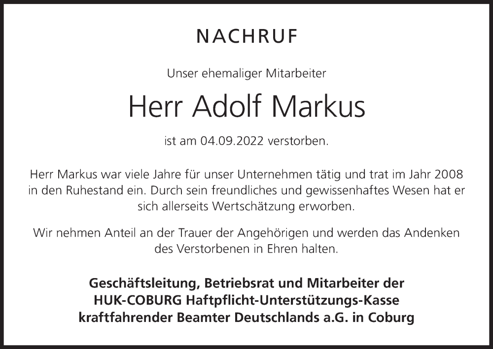 Hier finden Sie alle Traueranzeigen aus der Zeitung, die bisher für Adolf Markus erschienen sind. Weitere Traueranzeigen, die in der Zeitung erscheinen, werden hier ebenfalls aufgelistet