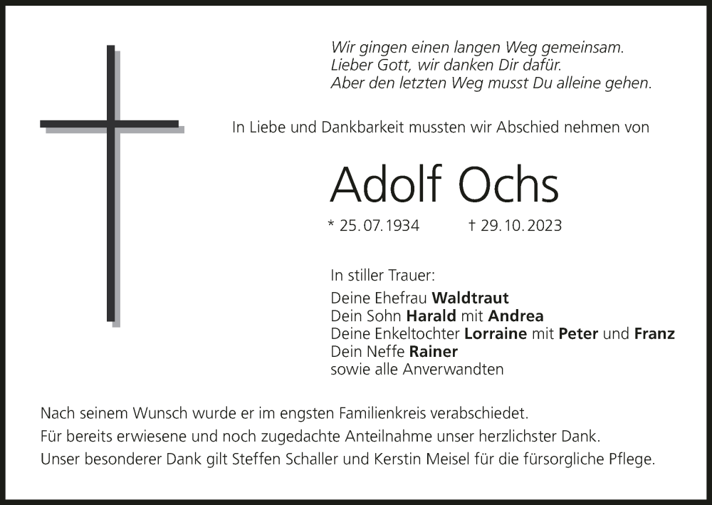 Hier finden Sie alle Traueranzeigen aus der Zeitung, die bisher für Adolf Ochs erschienen sind. Weitere Traueranzeigen, die in der Zeitung erscheinen, werden hier ebenfalls aufgelistet