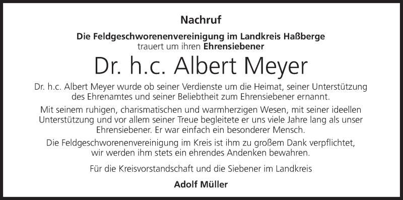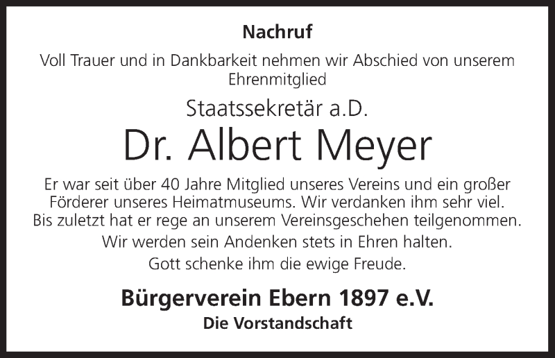 Hier finden Sie alle Traueranzeigen aus der Zeitung, die bisher für Albert Meyer erschienen sind. Weitere Traueranzeigen, die in der Zeitung erscheinen, werden hier ebenfalls aufgelistet