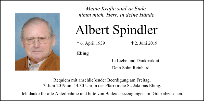 Hier finden Sie alle Traueranzeigen aus der Zeitung, die bisher für Albert Spindler erschienen sind. Weitere Traueranzeigen, die in der Zeitung erscheinen, werden hier ebenfalls aufgelistet