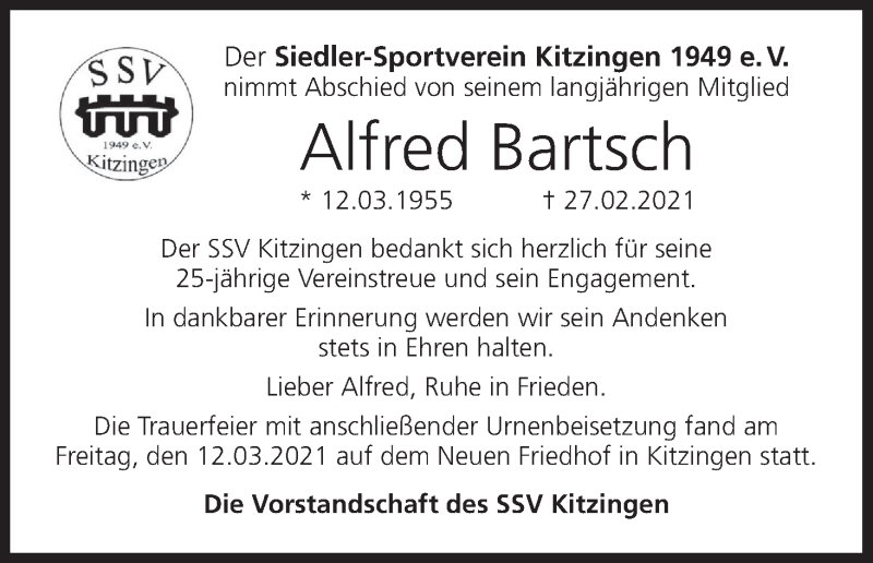 Hier finden Sie alle Traueranzeigen aus der Zeitung, die bisher für Alfred Bartsch erschienen sind. Weitere Traueranzeigen, die in der Zeitung erscheinen, werden hier ebenfalls aufgelistet