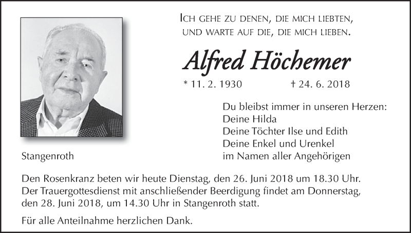 Hier finden Sie alle Traueranzeigen aus der Zeitung, die bisher für Alfred Höchemer erschienen sind. Weitere Traueranzeigen, die in der Zeitung erscheinen, werden hier ebenfalls aufgelistet