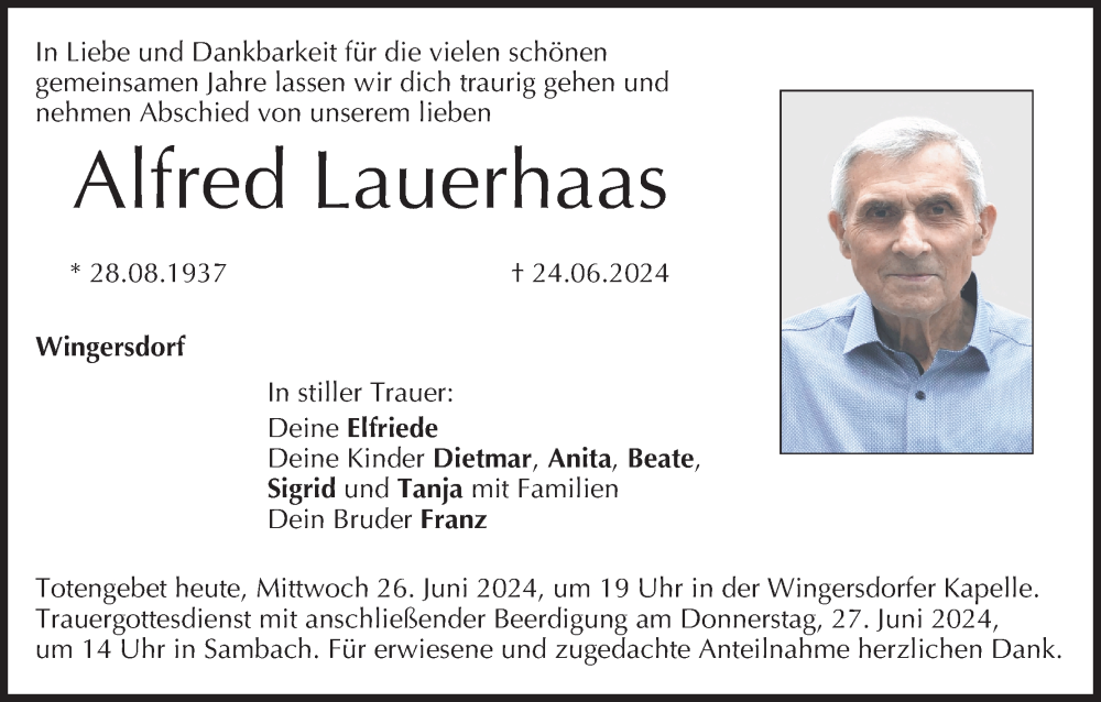 Hier finden Sie alle Traueranzeigen aus der Zeitung, die bisher für Alfred Lauerhaas erschienen sind. Weitere Traueranzeigen, die in der Zeitung erscheinen, werden hier ebenfalls aufgelistet