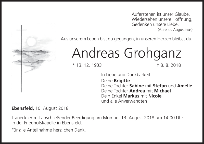 Hier finden Sie alle Traueranzeigen aus der Zeitung, die bisher für Andreas Grohganz erschienen sind. Weitere Traueranzeigen, die in der Zeitung erscheinen, werden hier ebenfalls aufgelistet