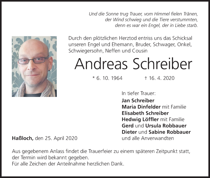 Hier finden Sie alle Traueranzeigen aus der Zeitung, die bisher für Andreas Schreiber erschienen sind. Weitere Traueranzeigen, die in der Zeitung erscheinen, werden hier ebenfalls aufgelistet