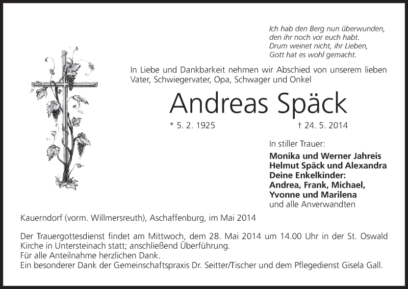 Hier finden Sie alle Traueranzeigen aus der Zeitung, die bisher für Andreas Späck erschienen sind. Weitere Traueranzeigen, die in der Zeitung erscheinen, werden hier ebenfalls aufgelistet