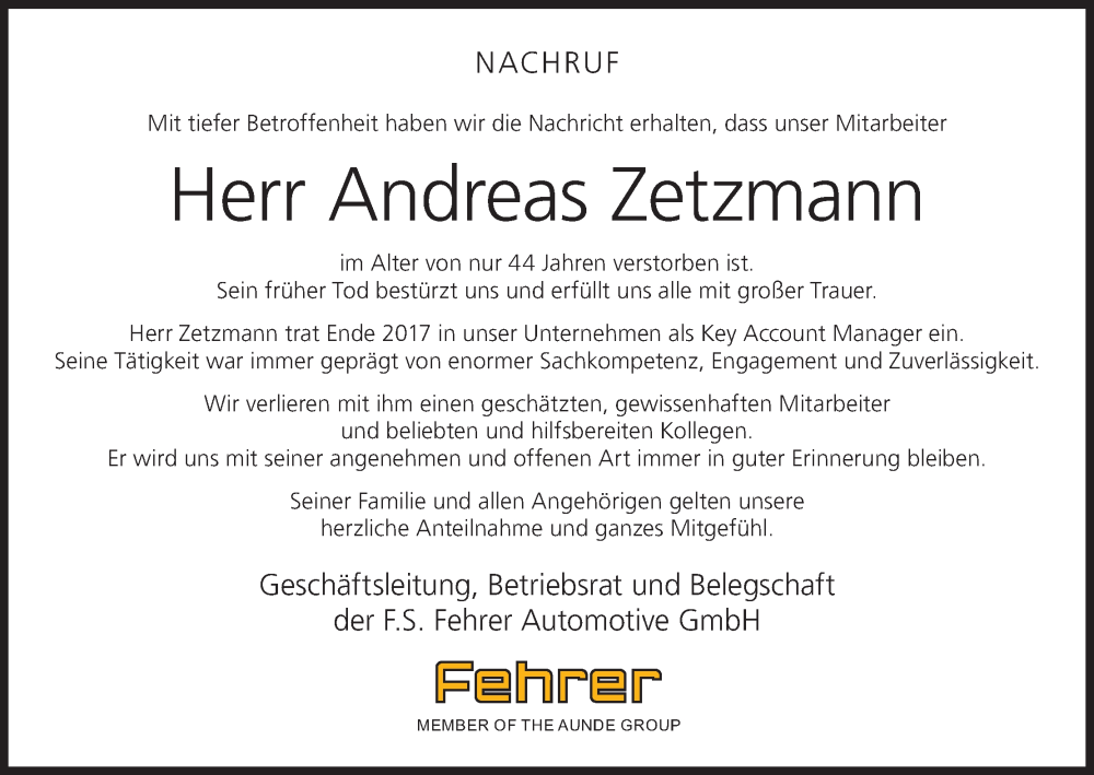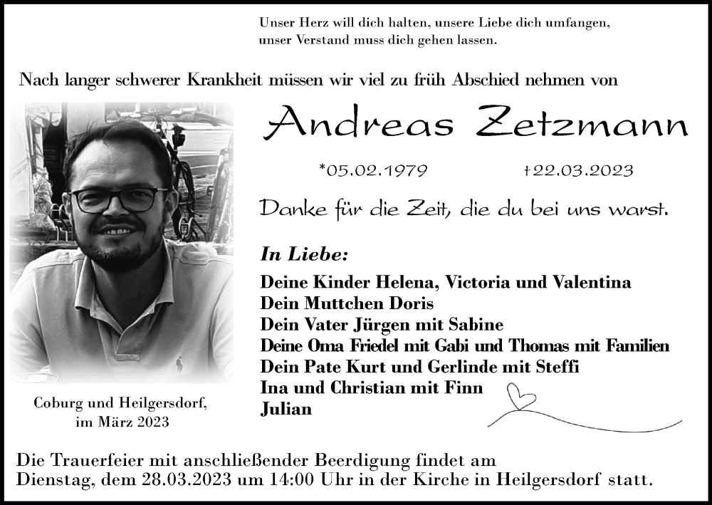 Hier finden Sie alle Traueranzeigen aus der Zeitung, die bisher für Andreas Zetzmann erschienen sind. Weitere Traueranzeigen, die in der Zeitung erscheinen, werden hier ebenfalls aufgelistet