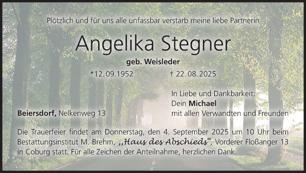 Hier finden Sie alle Traueranzeigen aus der Zeitung, die bisher für Angelika Stegner erschienen sind. Weitere Traueranzeigen, die in der Zeitung erscheinen, werden hier ebenfalls aufgelistet