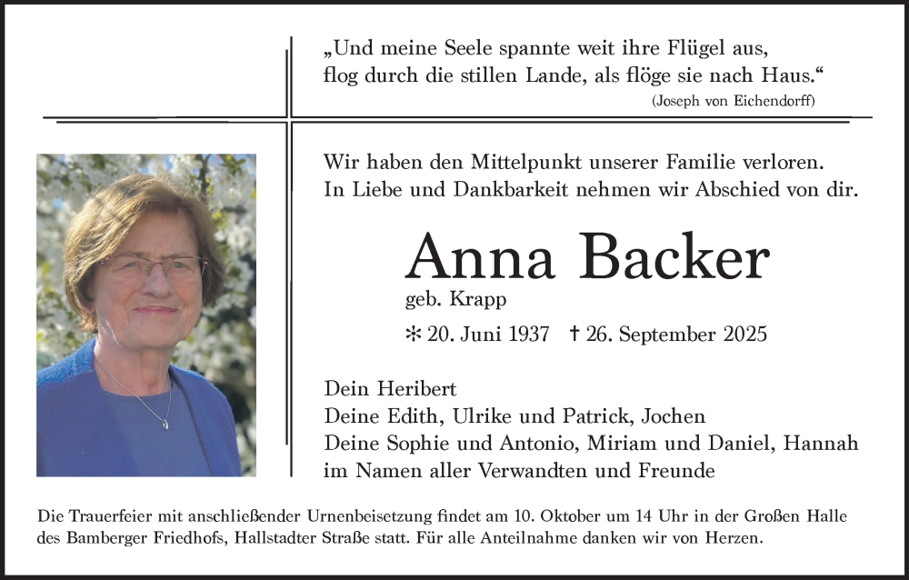 Hier finden Sie alle Traueranzeigen aus der Zeitung, die bisher für Anna Backer erschienen sind. Weitere Traueranzeigen, die in der Zeitung erscheinen, werden hier ebenfalls aufgelistet