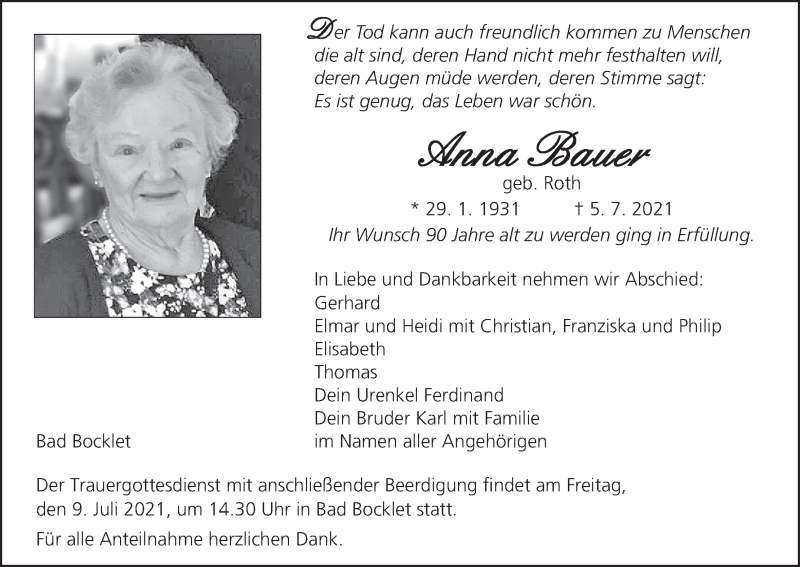 Hier finden Sie alle Traueranzeigen aus der Zeitung, die bisher für Anna Bauer erschienen sind. Weitere Traueranzeigen, die in der Zeitung erscheinen, werden hier ebenfalls aufgelistet