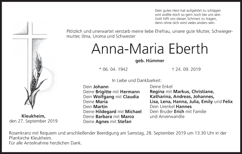 Hier finden Sie alle Traueranzeigen aus der Zeitung, die bisher für Anna-Maria Eberth erschienen sind. Weitere Traueranzeigen, die in der Zeitung erscheinen, werden hier ebenfalls aufgelistet