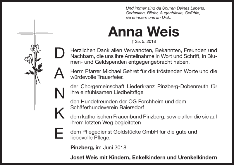 Hier finden Sie alle Traueranzeigen aus der Zeitung, die bisher für Anna Weis erschienen sind. Weitere Traueranzeigen, die in der Zeitung erscheinen, werden hier ebenfalls aufgelistet