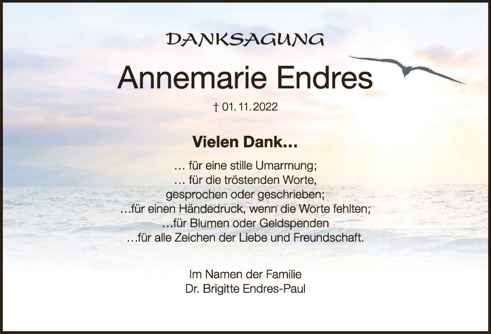 Hier finden Sie alle Traueranzeigen aus der Zeitung, die bisher für Annemarie Endres erschienen sind. Weitere Traueranzeigen, die in der Zeitung erscheinen, werden hier ebenfalls aufgelistet