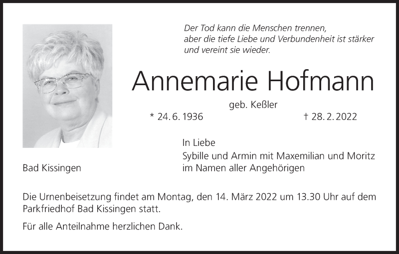 Hier finden Sie alle Traueranzeigen aus der Zeitung, die bisher für Annemarie Hofmann erschienen sind. Weitere Traueranzeigen, die in der Zeitung erscheinen, werden hier ebenfalls aufgelistet
