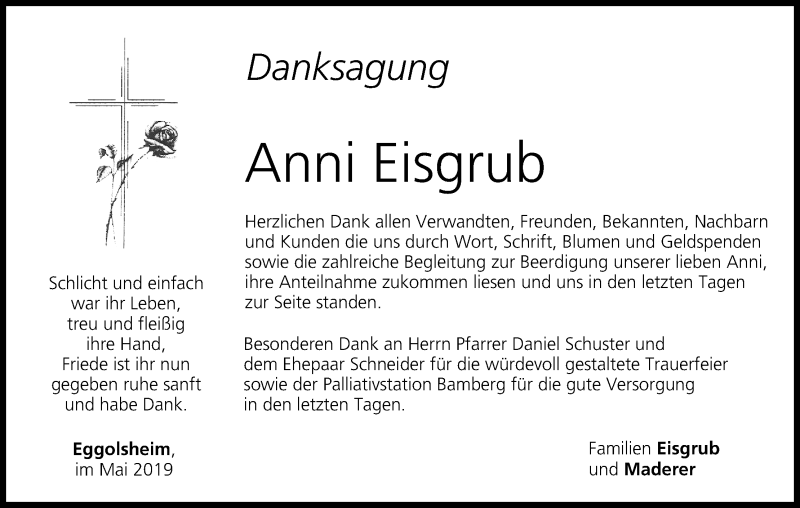 Hier finden Sie alle Traueranzeigen aus der Zeitung, die bisher für Anni Eisgrub erschienen sind. Weitere Traueranzeigen, die in der Zeitung erscheinen, werden hier ebenfalls aufgelistet