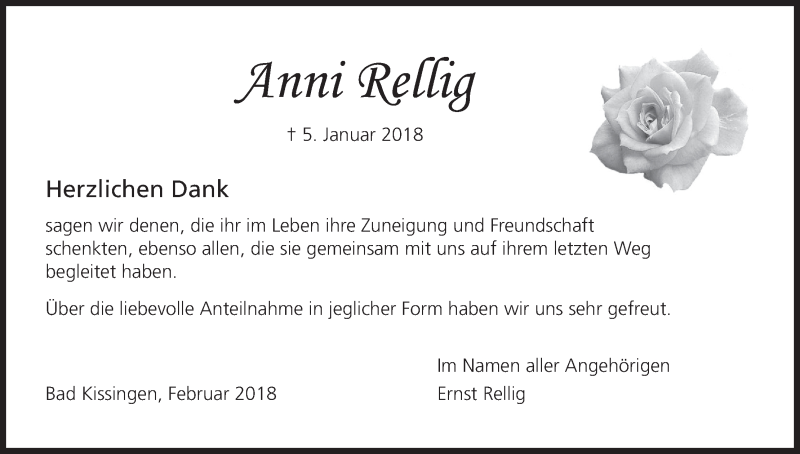 Hier finden Sie alle Traueranzeigen aus der Zeitung, die bisher für Anni Rellig erschienen sind. Weitere Traueranzeigen, die in der Zeitung erscheinen, werden hier ebenfalls aufgelistet