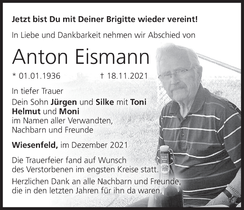 Hier finden Sie alle Traueranzeigen aus der Zeitung, die bisher für Anton Eismann erschienen sind. Weitere Traueranzeigen, die in der Zeitung erscheinen, werden hier ebenfalls aufgelistet
