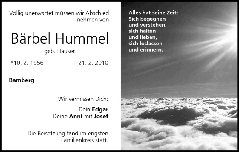 Hier finden Sie alle Traueranzeigen aus der Zeitung, die bisher für Bärbel Hummel erschienen sind. Weitere Traueranzeigen, die in der Zeitung erscheinen, werden hier ebenfalls aufgelistet
