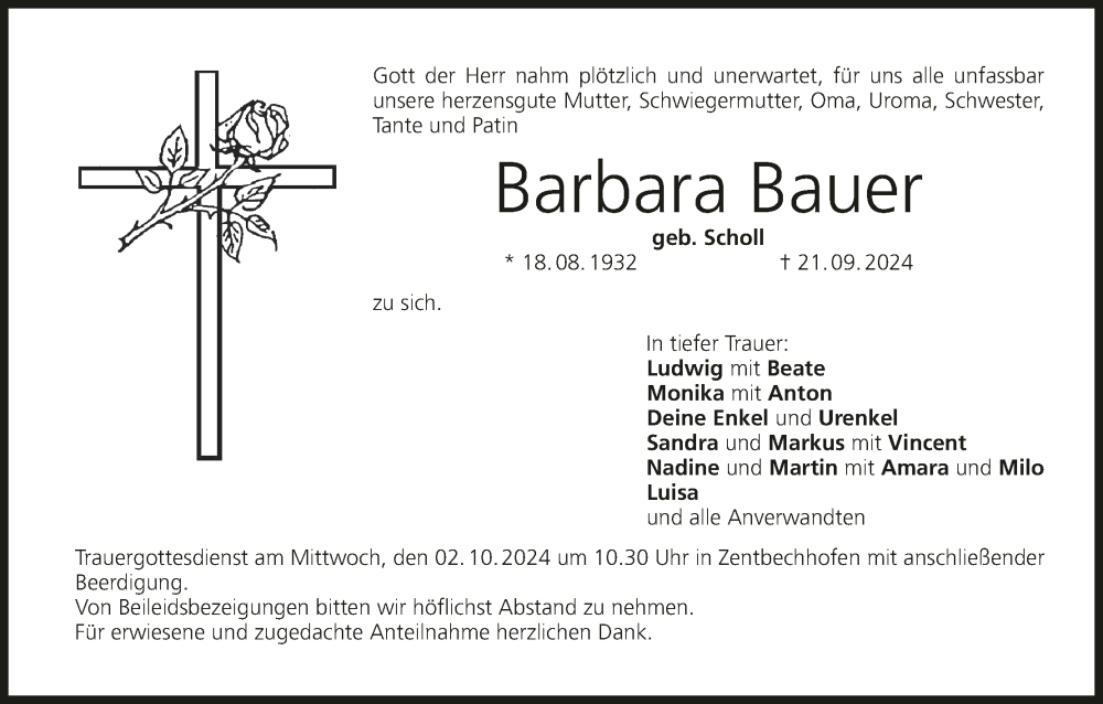 Hier finden Sie alle Traueranzeigen aus der Zeitung, die bisher für Barbara Bauer erschienen sind. Weitere Traueranzeigen, die in der Zeitung erscheinen, werden hier ebenfalls aufgelistet
