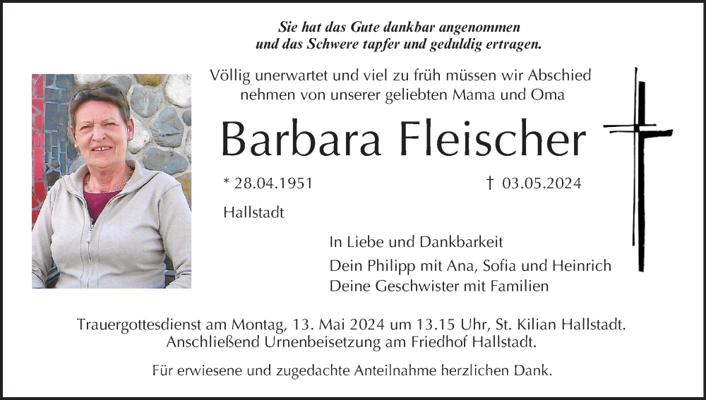 Hier finden Sie alle Traueranzeigen aus der Zeitung, die bisher für Barbara Fleischer erschienen sind. Weitere Traueranzeigen, die in der Zeitung erscheinen, werden hier ebenfalls aufgelistet