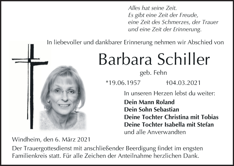 Hier finden Sie alle Traueranzeigen aus der Zeitung, die bisher für Barbara Schiller erschienen sind. Weitere Traueranzeigen, die in der Zeitung erscheinen, werden hier ebenfalls aufgelistet