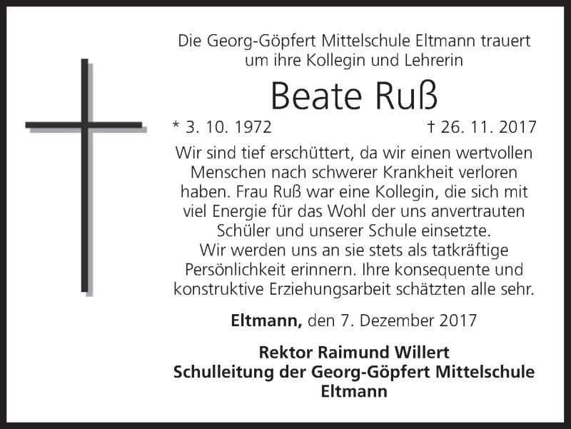 Hier finden Sie alle Traueranzeigen aus der Zeitung, die bisher für Beate Ruß erschienen sind. Weitere Traueranzeigen, die in der Zeitung erscheinen, werden hier ebenfalls aufgelistet