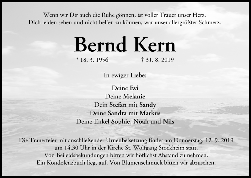 Hier finden Sie alle Traueranzeigen aus der Zeitung, die bisher für Bernd Kern erschienen sind. Weitere Traueranzeigen, die in der Zeitung erscheinen, werden hier ebenfalls aufgelistet