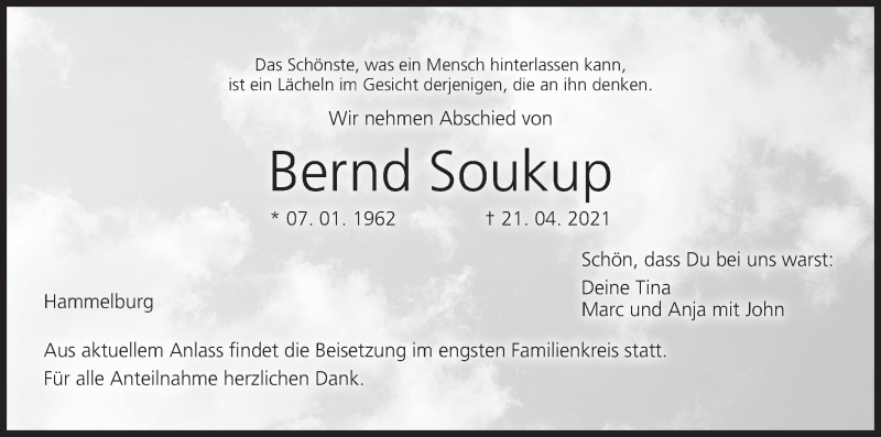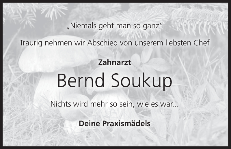 Hier finden Sie alle Traueranzeigen aus der Zeitung, die bisher für Bernd Soukup erschienen sind. Weitere Traueranzeigen, die in der Zeitung erscheinen, werden hier ebenfalls aufgelistet