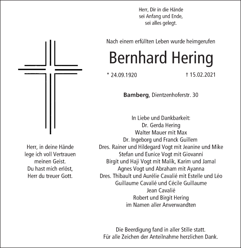 Hier finden Sie alle Traueranzeigen aus der Zeitung, die bisher für Bernhard Hering erschienen sind. Weitere Traueranzeigen, die in der Zeitung erscheinen, werden hier ebenfalls aufgelistet