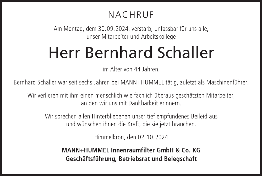 Hier finden Sie alle Traueranzeigen aus der Zeitung, die bisher für Bernhard Schaller erschienen sind. Weitere Traueranzeigen, die in der Zeitung erscheinen, werden hier ebenfalls aufgelistet