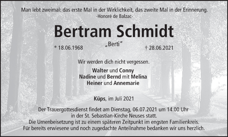 Hier finden Sie alle Traueranzeigen aus der Zeitung, die bisher für Bertram Schmidt erschienen sind. Weitere Traueranzeigen, die in der Zeitung erscheinen, werden hier ebenfalls aufgelistet