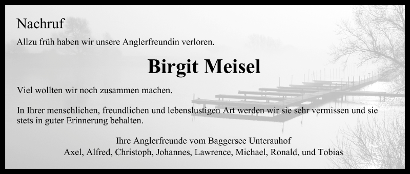 Hier finden Sie alle Traueranzeigen aus der Zeitung, die bisher für Birgit Meisel erschienen sind. Weitere Traueranzeigen, die in der Zeitung erscheinen, werden hier ebenfalls aufgelistet