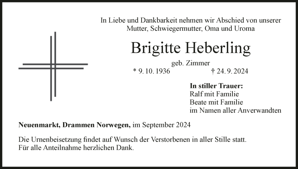 Hier finden Sie alle Traueranzeigen aus der Zeitung, die bisher für Brigitte Heberling erschienen sind. Weitere Traueranzeigen, die in der Zeitung erscheinen, werden hier ebenfalls aufgelistet