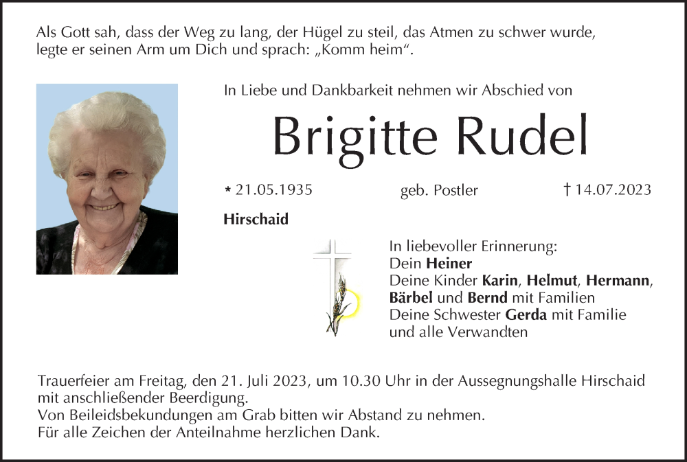 Hier finden Sie alle Traueranzeigen aus der Zeitung, die bisher für Brigitte Rudel erschienen sind. Weitere Traueranzeigen, die in der Zeitung erscheinen, werden hier ebenfalls aufgelistet