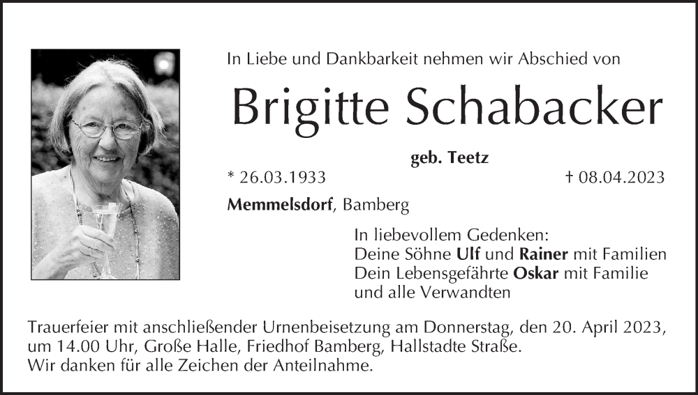 Hier finden Sie alle Traueranzeigen aus der Zeitung, die bisher für Brigitte Schabacker erschienen sind. Weitere Traueranzeigen, die in der Zeitung erscheinen, werden hier ebenfalls aufgelistet
