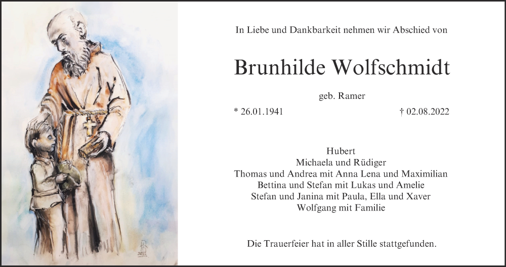 Hier finden Sie alle Traueranzeigen aus der Zeitung, die bisher für Brunhilde Wolfschmidt erschienen sind. Weitere Traueranzeigen, die in der Zeitung erscheinen, werden hier ebenfalls aufgelistet