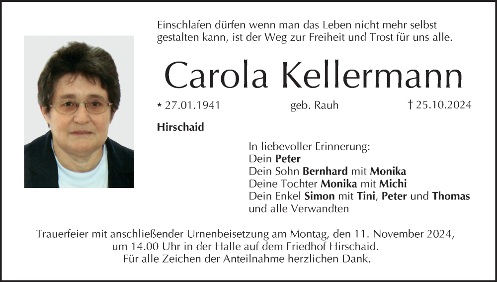 Hier finden Sie alle Traueranzeigen aus der Zeitung, die bisher für Carola Kellermann erschienen sind. Weitere Traueranzeigen, die in der Zeitung erscheinen, werden hier ebenfalls aufgelistet