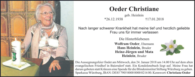 Hier finden Sie alle Traueranzeigen aus der Zeitung, die bisher für Christiane Oeder erschienen sind. Weitere Traueranzeigen, die in der Zeitung erscheinen, werden hier ebenfalls aufgelistet