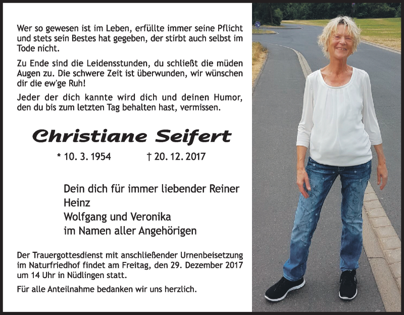 Hier finden Sie alle Traueranzeigen aus der Zeitung, die bisher für Christiane Seifert erschienen sind. Weitere Traueranzeigen, die in der Zeitung erscheinen, werden hier ebenfalls aufgelistet