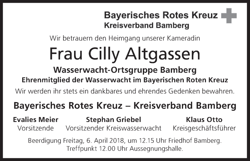 Hier finden Sie alle Traueranzeigen aus der Zeitung, die bisher für Cilly Altgassen erschienen sind. Weitere Traueranzeigen, die in der Zeitung erscheinen, werden hier ebenfalls aufgelistet