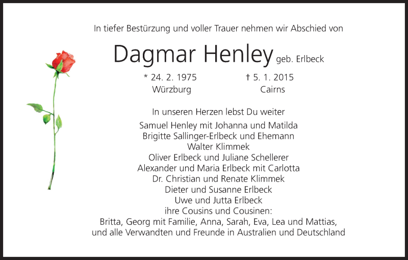 Hier finden Sie alle Traueranzeigen aus der Zeitung, die bisher für Dagmar Henley erschienen sind. Weitere Traueranzeigen, die in der Zeitung erscheinen, werden hier ebenfalls aufgelistet