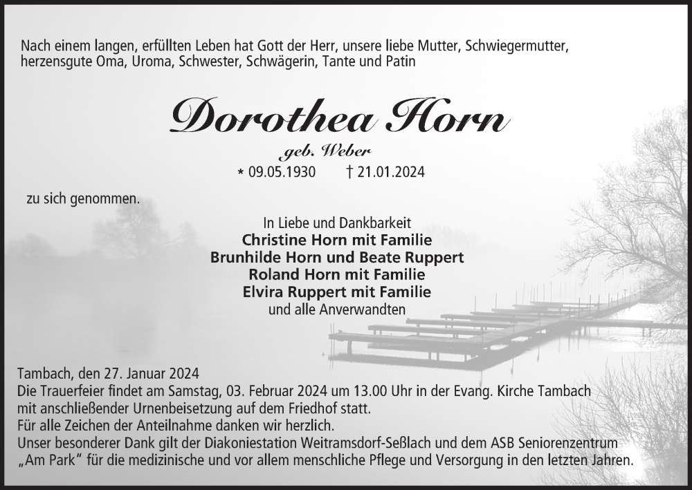 Hier finden Sie alle Traueranzeigen aus der Zeitung, die bisher für Ddorothea Horn erschienen sind. Weitere Traueranzeigen, die in der Zeitung erscheinen, werden hier ebenfalls aufgelistet