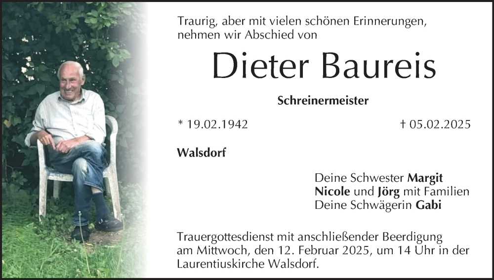 Hier finden Sie alle Traueranzeigen aus der Zeitung, die bisher für Dieter Baureis erschienen sind. Weitere Traueranzeigen, die in der Zeitung erscheinen, werden hier ebenfalls aufgelistet