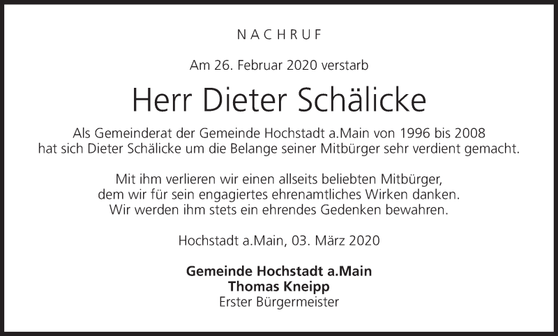 Hier finden Sie alle Traueranzeigen aus der Zeitung, die bisher für Dieter Schälicke erschienen sind. Weitere Traueranzeigen, die in der Zeitung erscheinen, werden hier ebenfalls aufgelistet